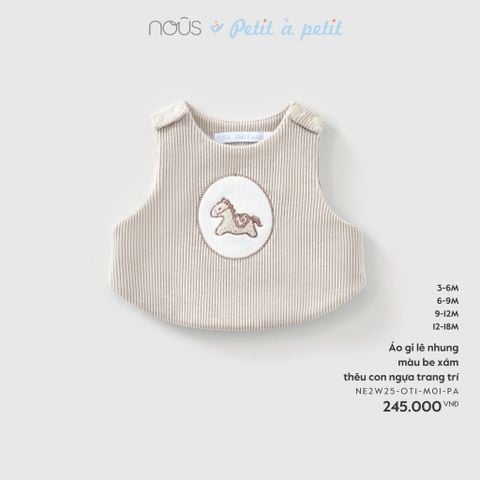 Áo gi lê nhung màu be xám thêu con ngựa trang trí Nous