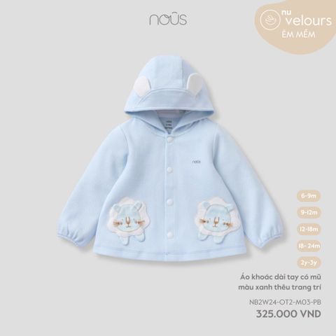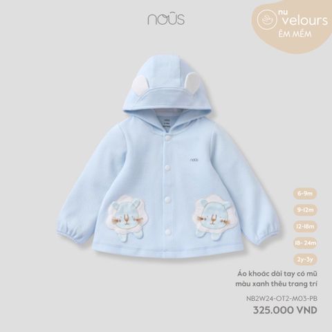 Áo khoác dài tay có mũ màu xanh thêu trang trí Nous