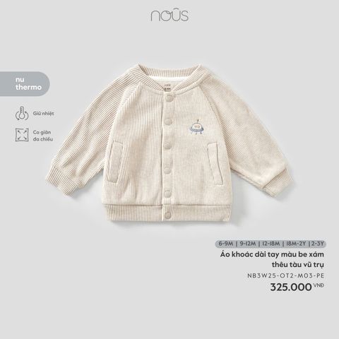 Áo khoác dài tay màu be xám thêu tàu vũ trụ Nous