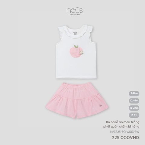 Bộ ba lỗ áo màu trắng phối quần chấm bi hồng Nous NP3S25-SC1-M03-PW-9M