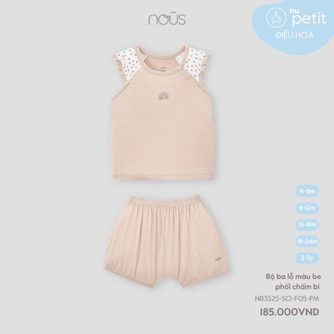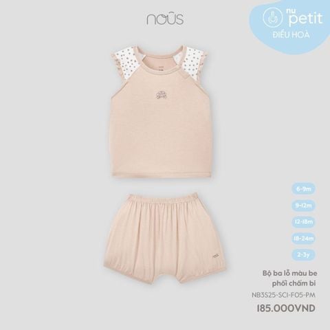 Bộ ba lỗ màu be phối chấm bi Nous NB3S25-SC1-F05-PM-6M