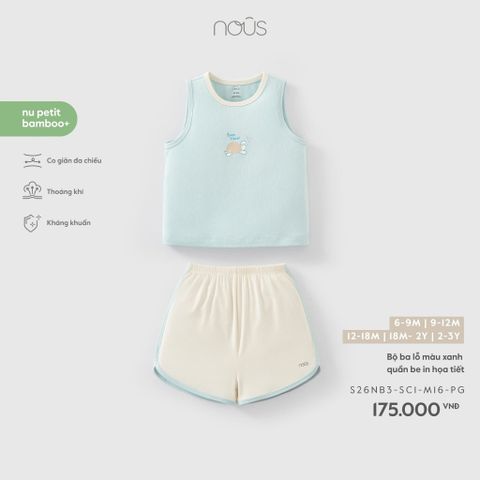 Bộ ba lỗ màu xanh quần be in họa tiết Nous