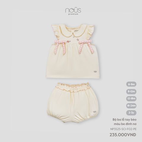 Bộ ba lỗ tay bèo màu be đính nơ Nous NP3S25-SC1-F02-PE-6M
