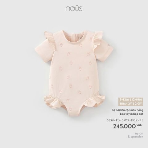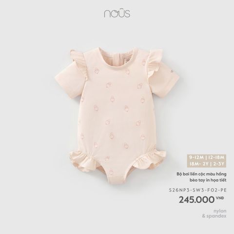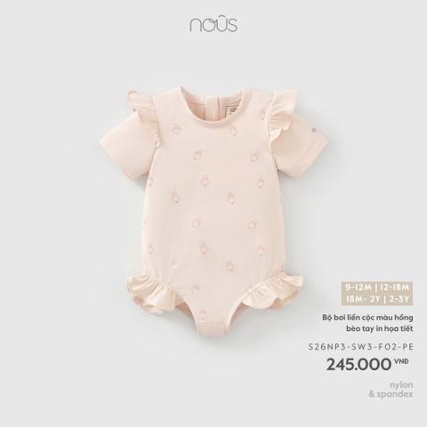 Bộ bơi liền cộc màu hồng bèo tay in họa tiết Nous