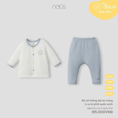 Bộ cài thẳng dài áo trắng in sư tử phối quần xanh Nous