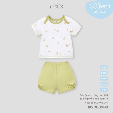 Bộ cộc áo trắng họa tiết quả lê phối quần xanh lá Nous NB3S25-SC2-M15-OW-6M