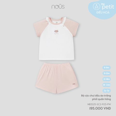 Bộ cộc chui đầu áo trắng phối quần hồng Nous