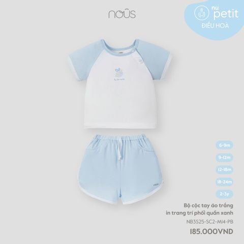 Bộ cộc tay áo trắng in trang trí phối quần xanh Nous NB3S25-SC2-M14-PB-6M