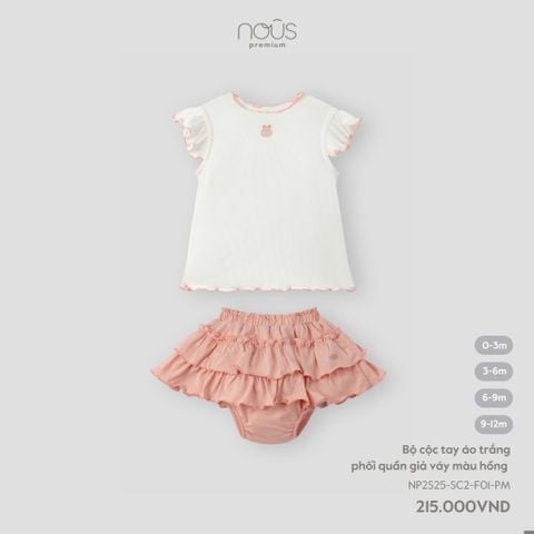 Bộ cộc tay áo trắng phối quần giả váy màu hồng Nous NP2S25-SC2-F01-PM-0M