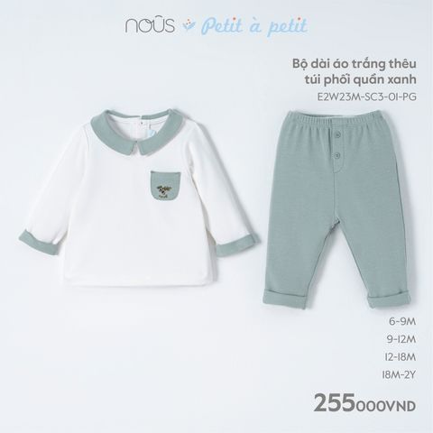 Bộ dài áo trắng thêu túi phối quần xanh Nous