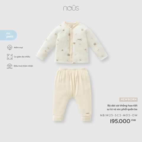 Bộ dài cài thẳng họa tiết sư tử và sóc phối quần be Nous