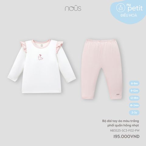 Bộ dài tay áo màu trắng phối quần hồng nhạt Nous NB3S25-SC3-F02-PW-6M