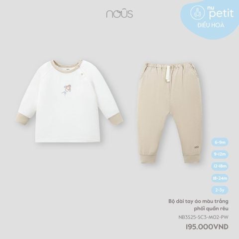 Bộ dài tay áo màu trắng phối quần rêu Nous NB3S25-SC3-M02-PW-6M
