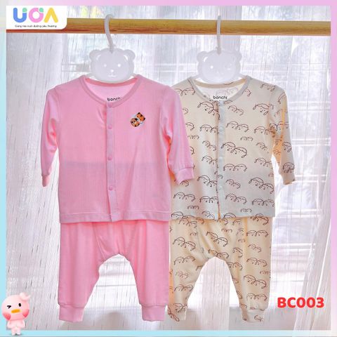 Bộ dài tay BonChi nút thẳng dài - Be - 6-12m