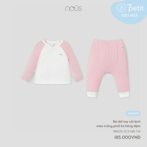 Bộ dài tay cài lệch màu trắng phối kẻ hồng đậm Nous NB1S25-SC3-U16-TM-NB