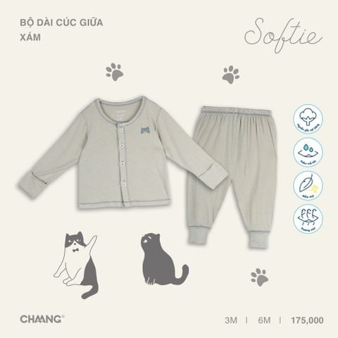 Bộ dài tay Chaang cúc giữa - vàng - 0-3m