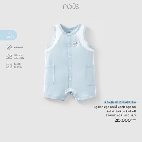 Bộ liền cộc ba lỗ xanh bạc hà in bé chơi pickleball Nous