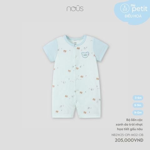 Bộ liền cộc xanh da trời nhạt họa tiết gấu nâu Nous