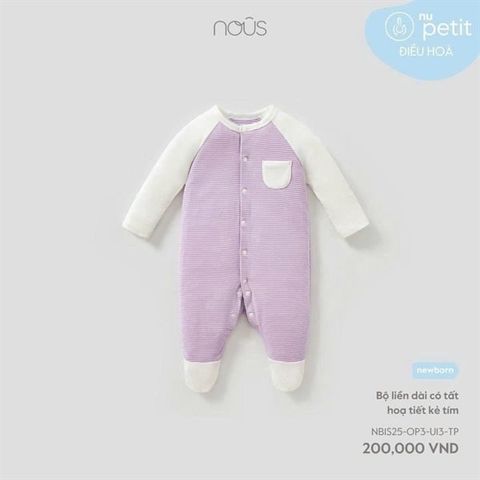 Bộ liền dài có tất hoạ tiết kẻ tím Nous