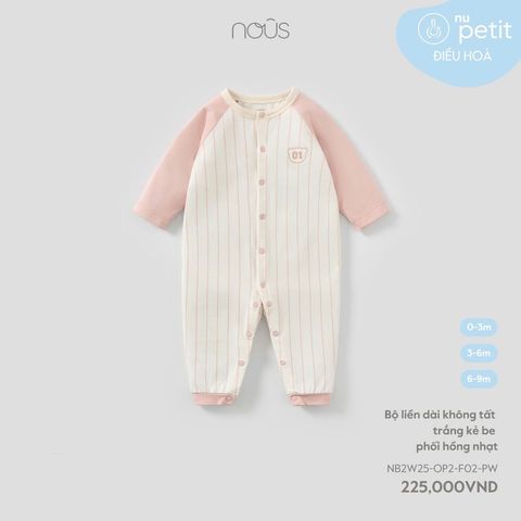 Bộ liền dài không tất trắng kẻ be phối hồng nhạt Nous
