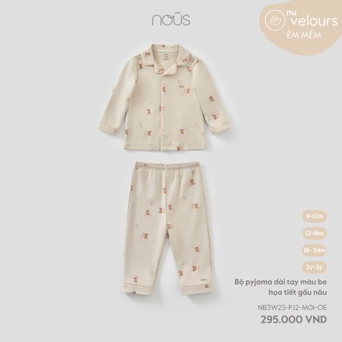 Bộ pyjama dài tay màu be họa tiết gấu nâu Nous