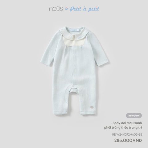 Body dài màu xanh phối trắng thêu trang trí Nous
