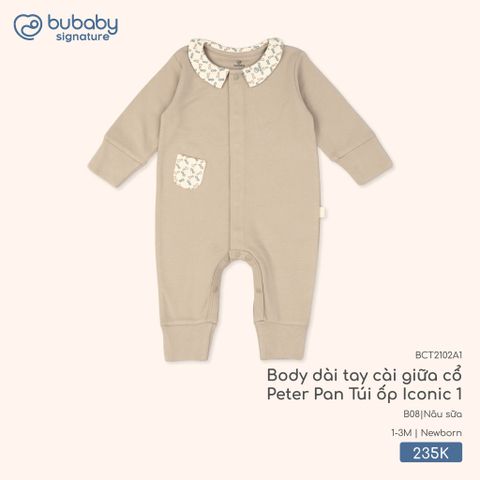Body dài tay cài giữa cổ Peter Pan Túi ốp Iconic 1 Bubaby