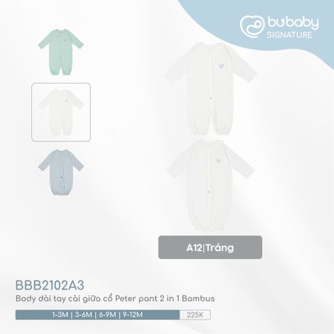 Body dài tay cài giữa cổ Peter pant 2 in 1 Bambus 2102A3 Bubaby