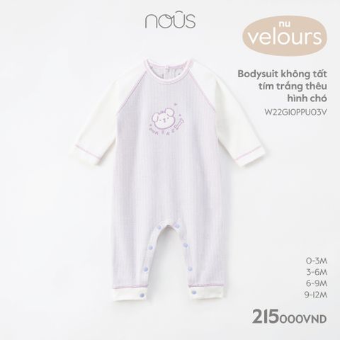 Bodysuit không tất tím trắng thêu hình chó Nous