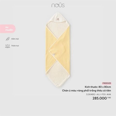 Chăn ủ màu vàng phối trắng thêu cô tiên Nous