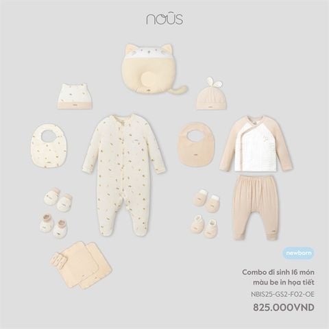 Combo đi sinh 16 món màu be in họa tiết Nous