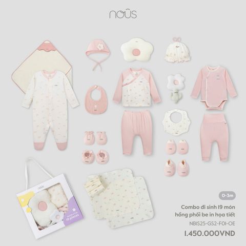 Combo đi sinh 19 món hồng phối be in họa tiết Nous NB1S25-GS2-F01-OE-NB