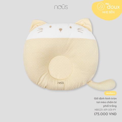 Gối định hình tròn tai mèo chấm bi phối trắng Nous