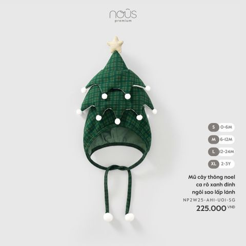 Mũ cây thông noel ca rô xanh đính ngôi sao lấp lánh Nous
