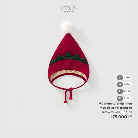 Mũ chùm tai chóp nhọn màu đỏ có tai trang trí Nous