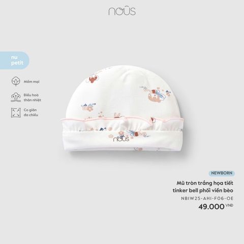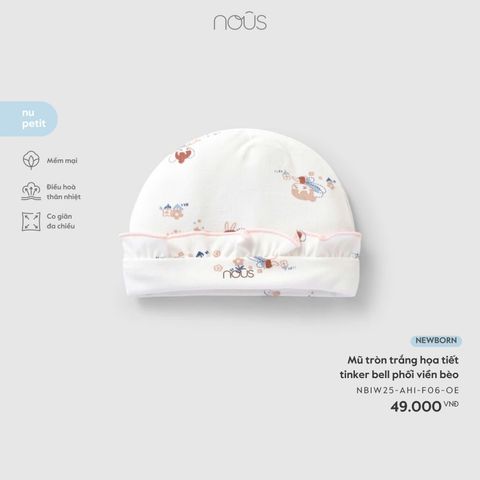 Mũ tròn trắng họa tiết tinker bell phối viền bèo Nous
