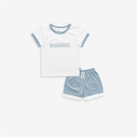 Bộ ngắn tay cổ tròn Muda 1304MD Bubaby Trắng - Xanh ghi đá E67 12-18m