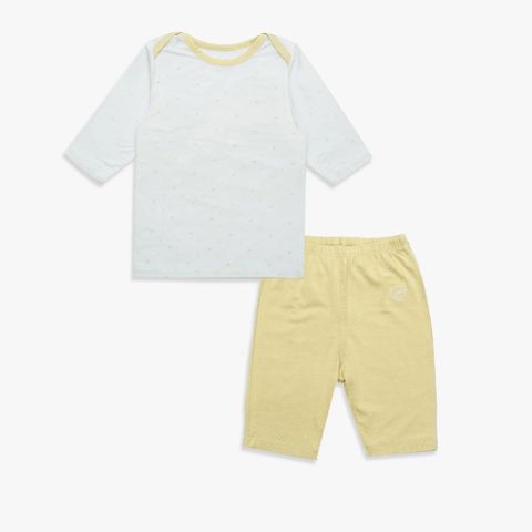 Promo Bộ tay lỡ tay lỡ cổ chồm Bambus Glory Bubaby - Trắng in vương miện vàng C54 - 3-6m