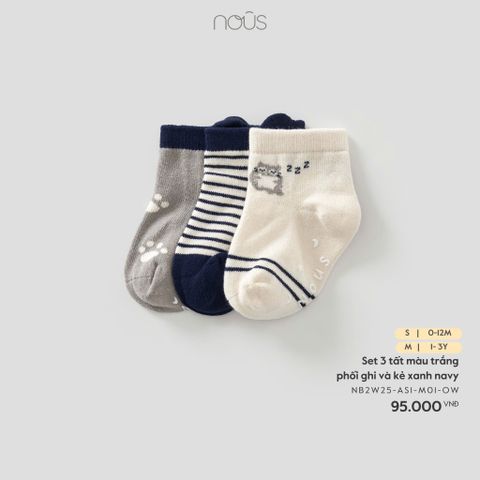 Set 3 tất màu trắng phối ghi và kẻ xanh navy Nous