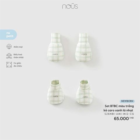 Set bao chân, bao tay màu trắng kẻ caro xanh lá nhạt Nous
