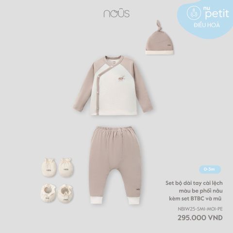 Set bộ dài tay cài lệch màu be phối nâu kèm set BTBC và mũ Nous