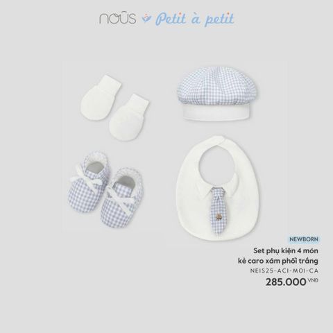 Set phụ kiện 4 món kẻ caro xám phối trắng Nous