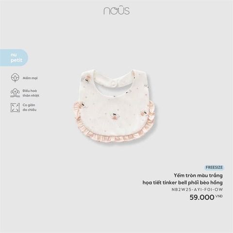 Yếm tròn màu trắng họa tiết tinker bell phối bèo hồng Nous
